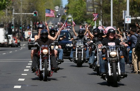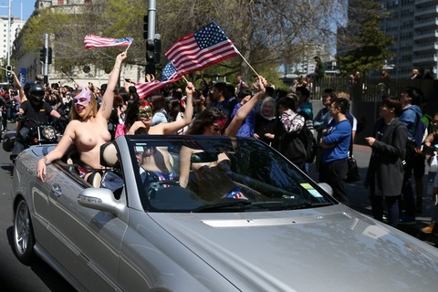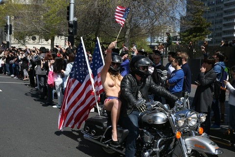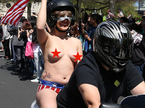 As to why they're holding American flags in NZ ... who knows -- but nothing says freedom like nudity and choppers